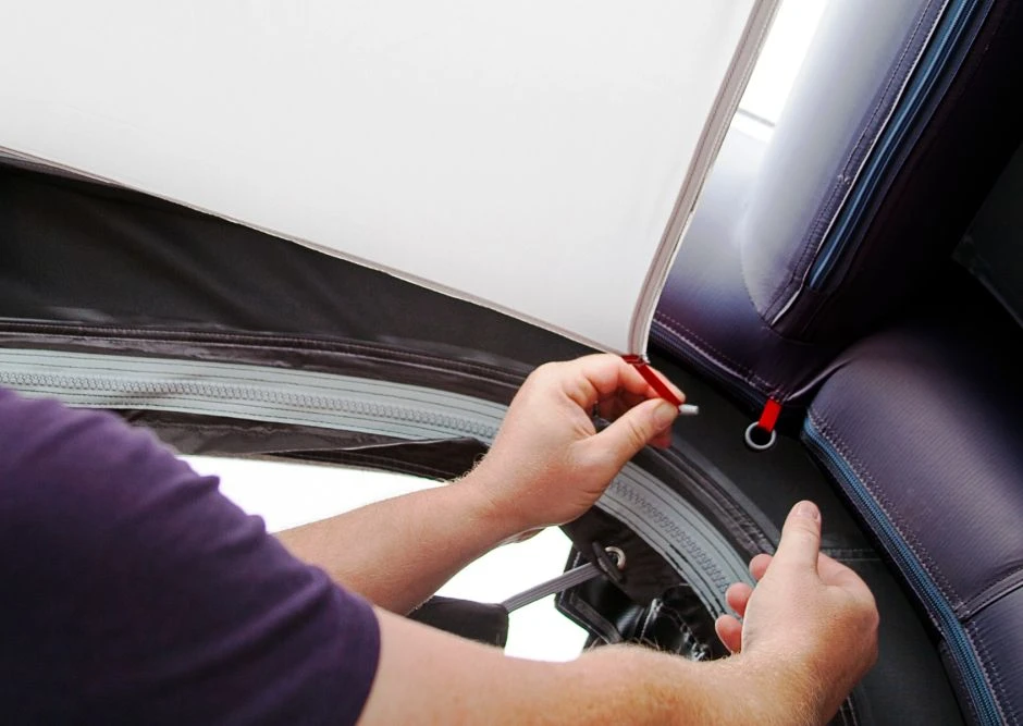 The all new 2025 Outdoor Revolution Sport Pro 390 premium air awning is packed with unbeatable functionality, usability and versatility to meet the needs of modern caravaners. Featuring a clean and understated design, it is built with a neutral but confident color scheme, designed to complement any caravan or motorhome. With a multi-functional zip in-zip out curtain system, luxurious polycotton curtains offer the option to be zipped out and removed, tied back in traditional style, rolled and tied up, or rolled and tied back either left or right. Constructed with our trusted 600HD awning fabric, it is built to withstand harsh weather conditions and maintain its strength and fade resistance. The Pro models also feature a multi-height adjustable roof, making it suitable for a wide range of van and motorhome heights, and come with standard 4mm and 6mm twin piping for easy rail connections. With all these great features, the Sport Pro awning range proves to be the most versatile choice